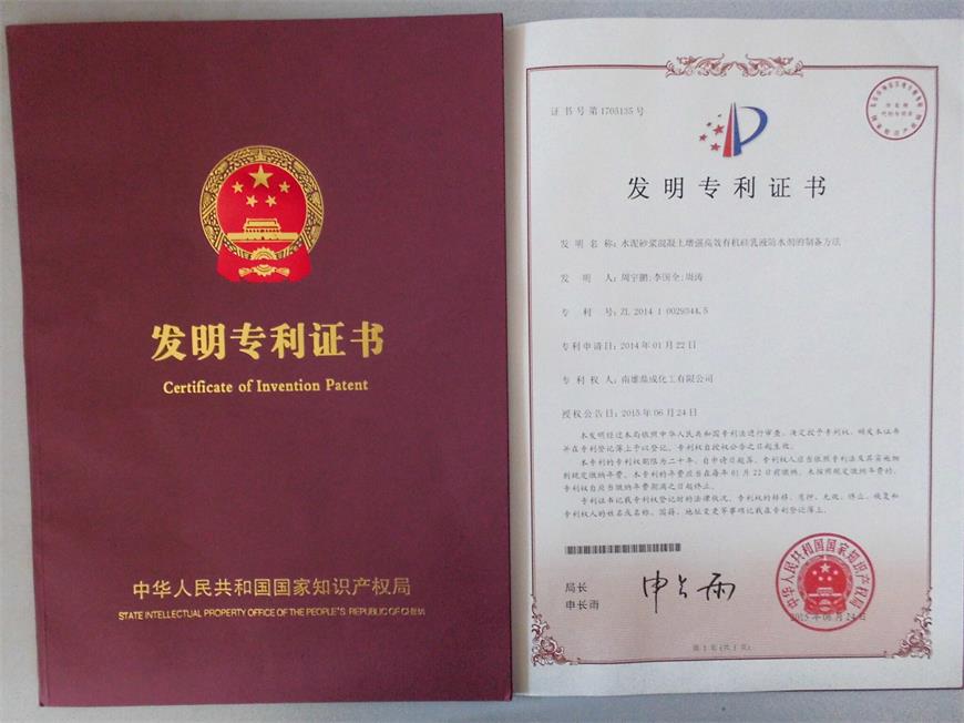實用新型專利證書-有機硅乳液防水劑制備方法